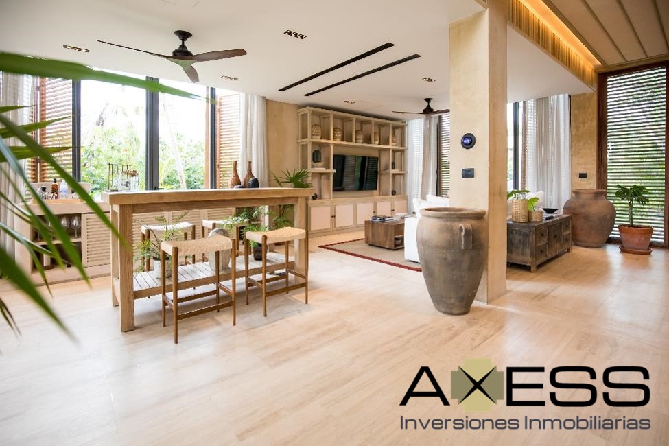 Esta exclusiva villa en Palm Villas, un enclave de lujo dentro del resort Corasol, ofrece una experiencia residencial incomparable en Playa del Carmen. Con una superficie total de 507 m² sobre un lote de 841 m², esta residencia de tres niveles ha sido diseñada para quienes buscan sofisticación, privacidad y conexión con la naturaleza. La propiedad cuenta con: 4 habitaciones y 4.5 baños, brindando amplios espacios y confort. Cocina de alta gama con electrodomésticos modernos. Una gran terraza privada con alberca, ideal para disfrutar del clima caribeño. Cochera para tres vehículos. El diseño de la villa, a cargo de la firma Sordo Madaleno, se integra perfectamente con el entorno natural, ofreciendo vistas al campo de golf Gran Coyote, la jungla y el mar Caribe. Vivir en Palm Villas significa tener acceso a un estilo de vida privilegiado gracias a las amenidades de clase mundial de Corasol: Golf: El prestigioso campo de golf Gran Coyote de 18 hoyos, diseñado por Nick Price. Playa: El Costa Beach Club, con acceso a una playa privada, restaurante, spa, gimnasio y piscinas. Deporte y recreación: "The Park" cuenta con canchas de tenis, pádel, básquetbol, cenotes artificiales y huertos orgánicos. La ubicación de la villa es estratégica, a solo 8 minutos del centro de Playa del Carmen y a 40 minutos del Aeropuerto Internacional de Cancún. Esta cercanía a la vibrante vida de la ciudad, junto con la exclusividad del desarrollo, asegura una alta plusvalía y hace de esta propiedad una inversión segura y de alto rendimiento.