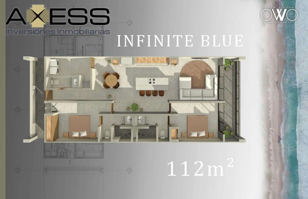 Este excepcional departamento en Owo Punta Mita, en la prestigiosa Riviera Nayarit, ofrece un estilo de vida de lujo y exclusividad. Con una superficie de 112 m², el espacio ha sido diseñado para quienes buscan confort, estilo y una conexión auténtica con la naturaleza. El departamento incluye: 2 recámaras y 2.5 baños con acabados de alta gama. Una espaciosa área de sala y comedor. Una cocina moderna. Un cuarto de lavado. Un balcón para disfrutar de la brisa marina y los atardeceres. Un cajón de estacionamiento. El desarrollo Owo Punta Mita se distingue por sus amenidades de clase mundial, diseñadas para elevar la calidad de vida de sus residentes: Relajación y recreación: Un club de playa privado, un spa de primer nivel y canchas de pádel. Bienestar: Un gimnasio equipado y un pet club para las mascotas. Socialización: Una zona de bar y un área de picnic. Productividad: Un espacio de coworking. La ubicación de la propiedad en la península privada de Punta Mita es un factor clave, ya que es reconocida internacionalmente por sus playas vírgenes y su exclusividad. La cercanía al Aeropuerto Internacional de Puerto Vallarta y la constante plusvalía en el mercado de bienes raíces premium hacen de este departamento una inversión estratégica y un hogar ideal.